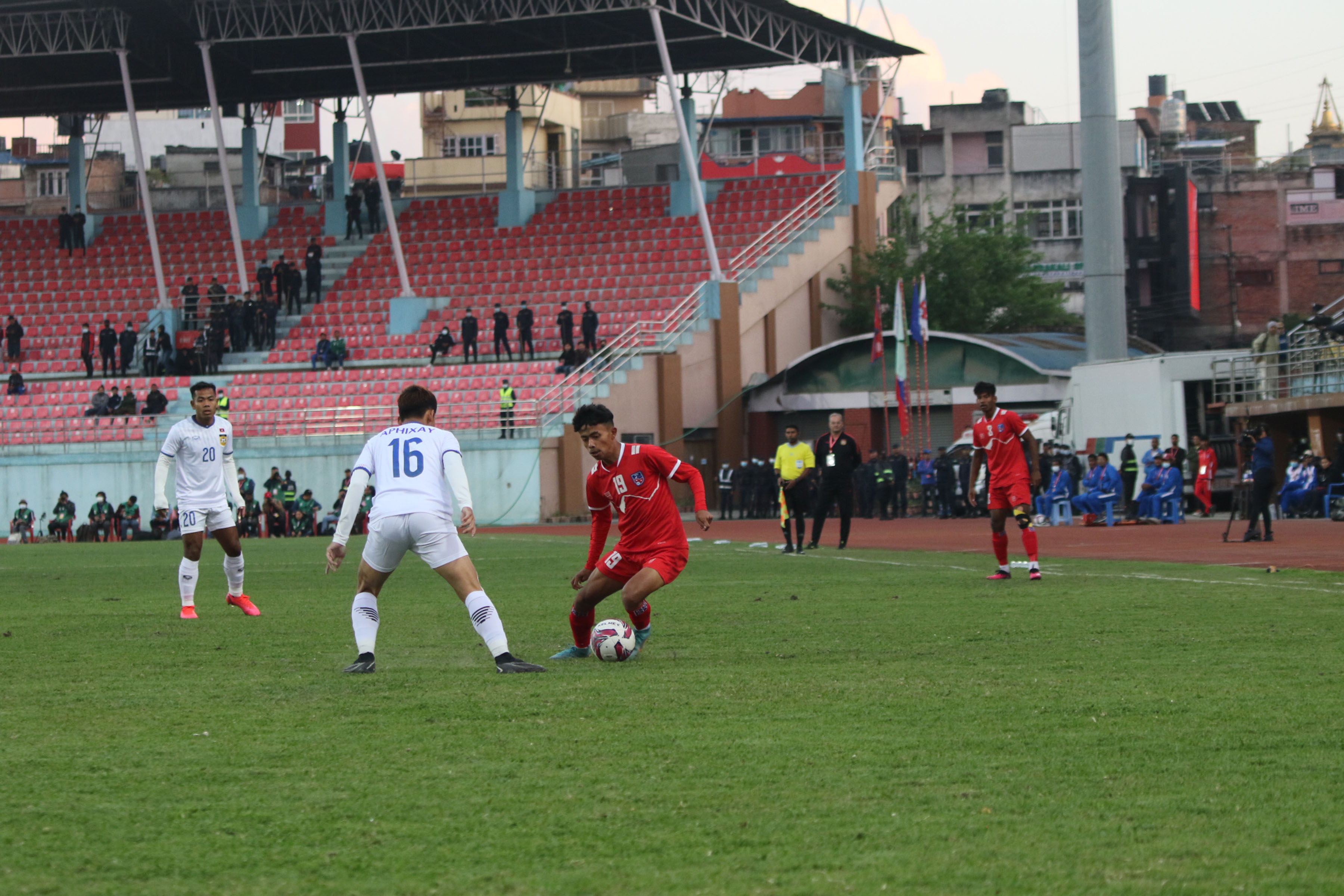 काठमाडौं । राजधानीमा आजदेखि सुरु भएको प्रधानमन्त्री त्रिदेशीय पुरुष फुटबल प्रतियोगितामा नेपालले लाओसलाई पराजित गरेको छ । त्रिपुरेश्वरस्थित दशरथ रङ्गशालामा आज भएको उद्घाटन खेलमा नेपालले लाओसलाई २–० गोलअन्तरले पराजित गरेको हो ।