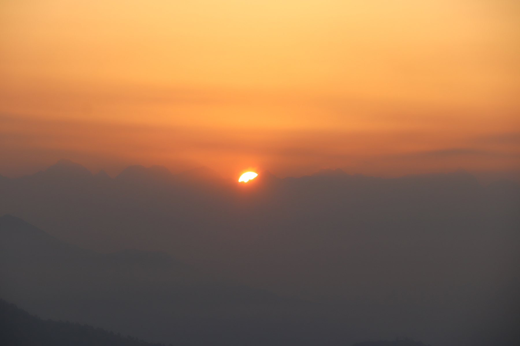 शिवपुरी नागार्जुन राष्ट्रिय निकुञ्जसँग जोडिएको पर्यटकीयस्थल चिसापानीबाट देखिएको सूर्योदय । तस्बिर: हरिराम भेटुवाल/ रासस