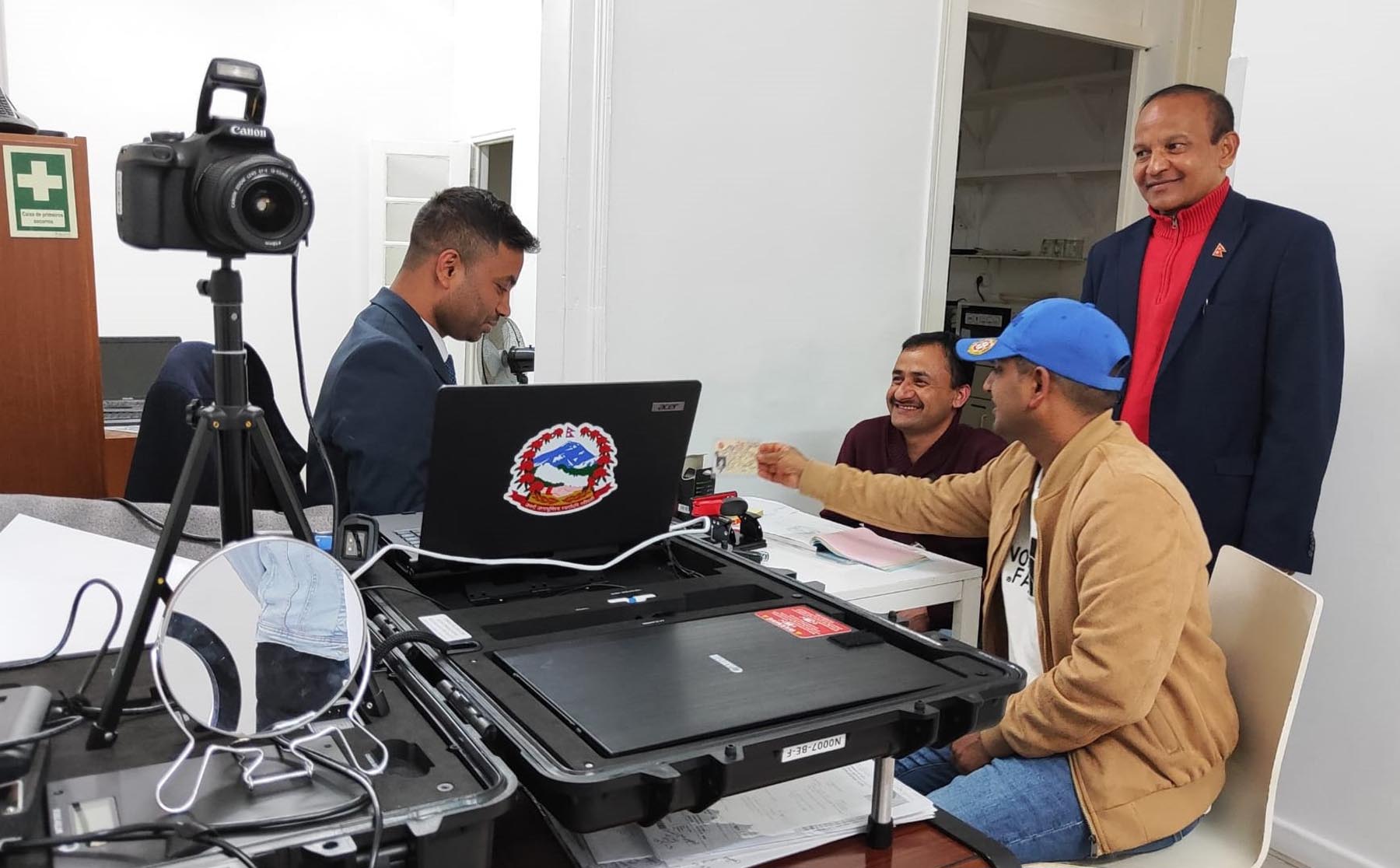 युरोपेली मुलुक पोर्चुगलमा रहेका नेपालीहरुलाई विद्युतीय राहदानीका लागि पोर्चुगलको राजधानी लिस्बनबाट दरखास्त सङ्कलन गरिँदै । तस्बीर:भरत प्रधान/ रासस