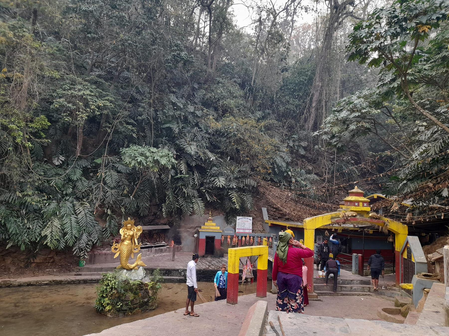 व्यास नगरपालिका–१४ स्थित प्रसिद्ध धार्मिकस्थल छाब्दी बाराही मन्दिर परिसरमा सरसफाइ गर्दै स्थानीय बासिन्दा । वैशाख १ गते नयाँ वर्षका दिन विभिन्न स्थानबाट पूजाअर्चनाको लागि यस मन्दिरमा भक्तजनको भीड लाग्ने गर्दछ । तस्बिर:सानेबहादुर नेपाली /रासस
