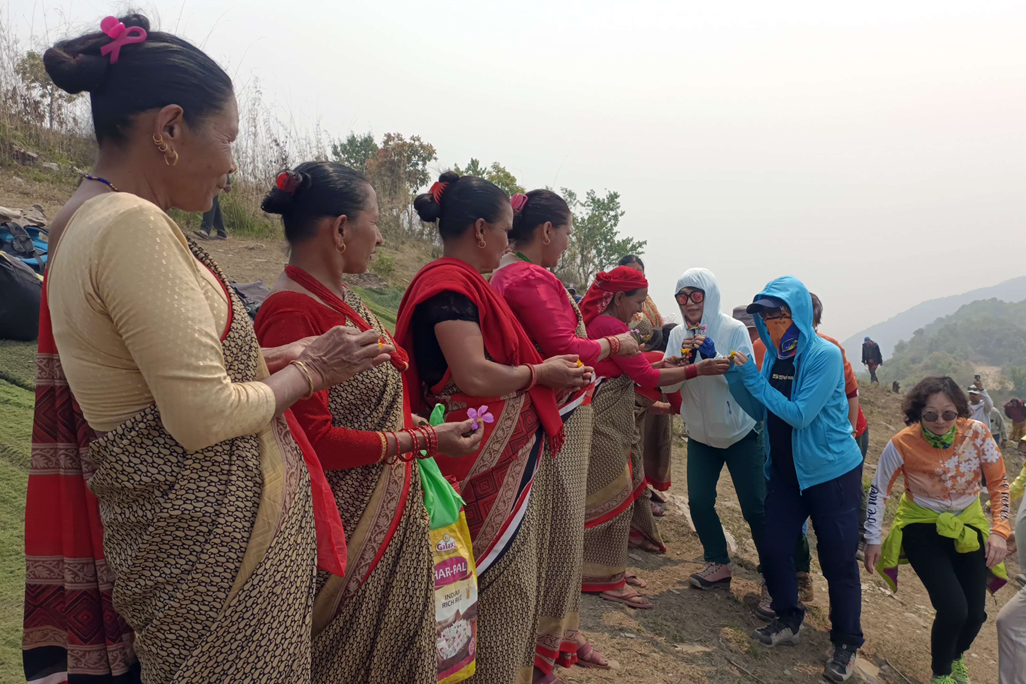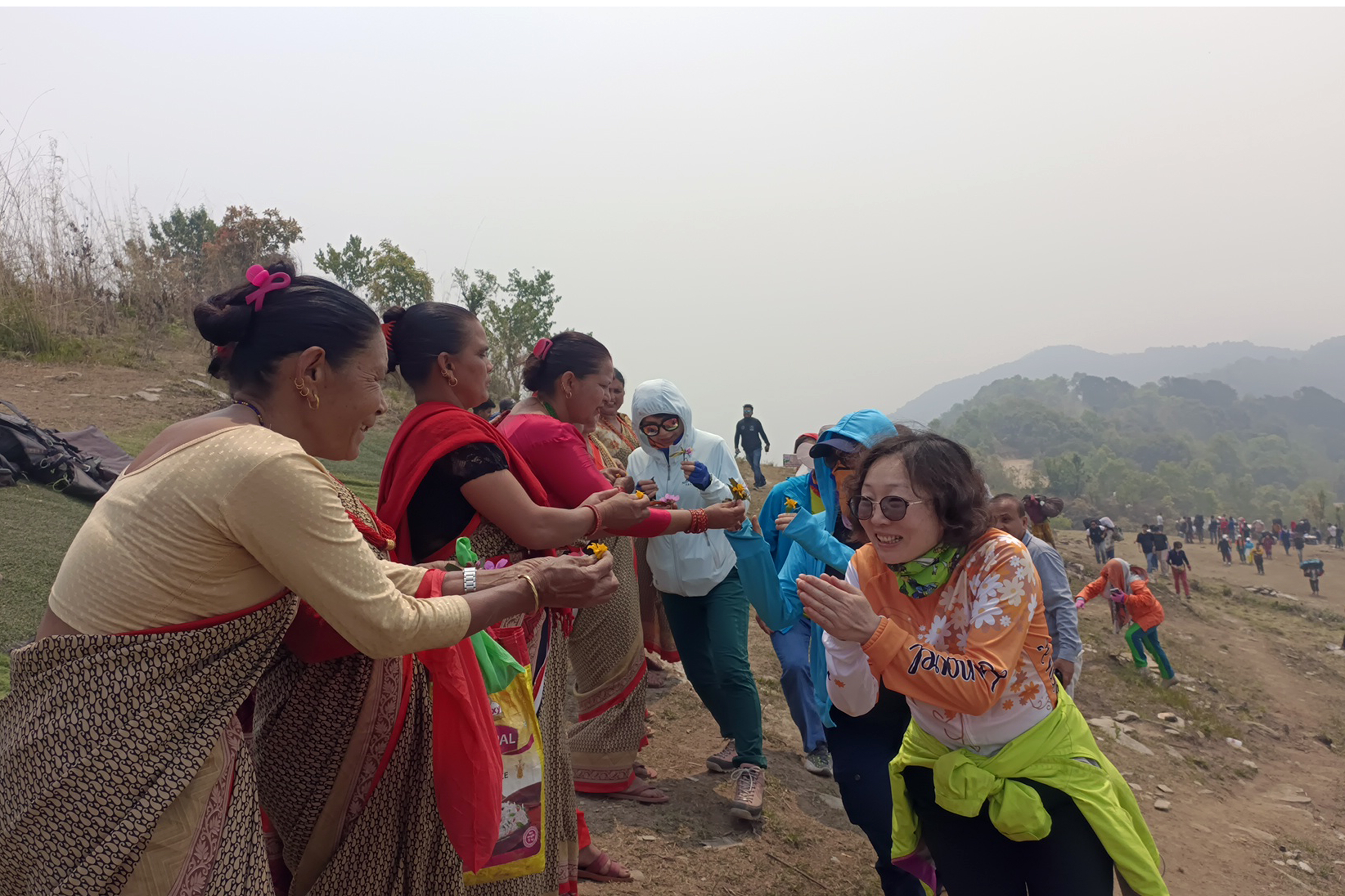 प्याराग्लाइडिङ गर्न पोखरा– २४, मान्द्रेढुङ्गामा आइपुगेका चिनियाँ पदाधिकारीहरु । तस्बिरः जमुनावर्षा शर्मा/रासस