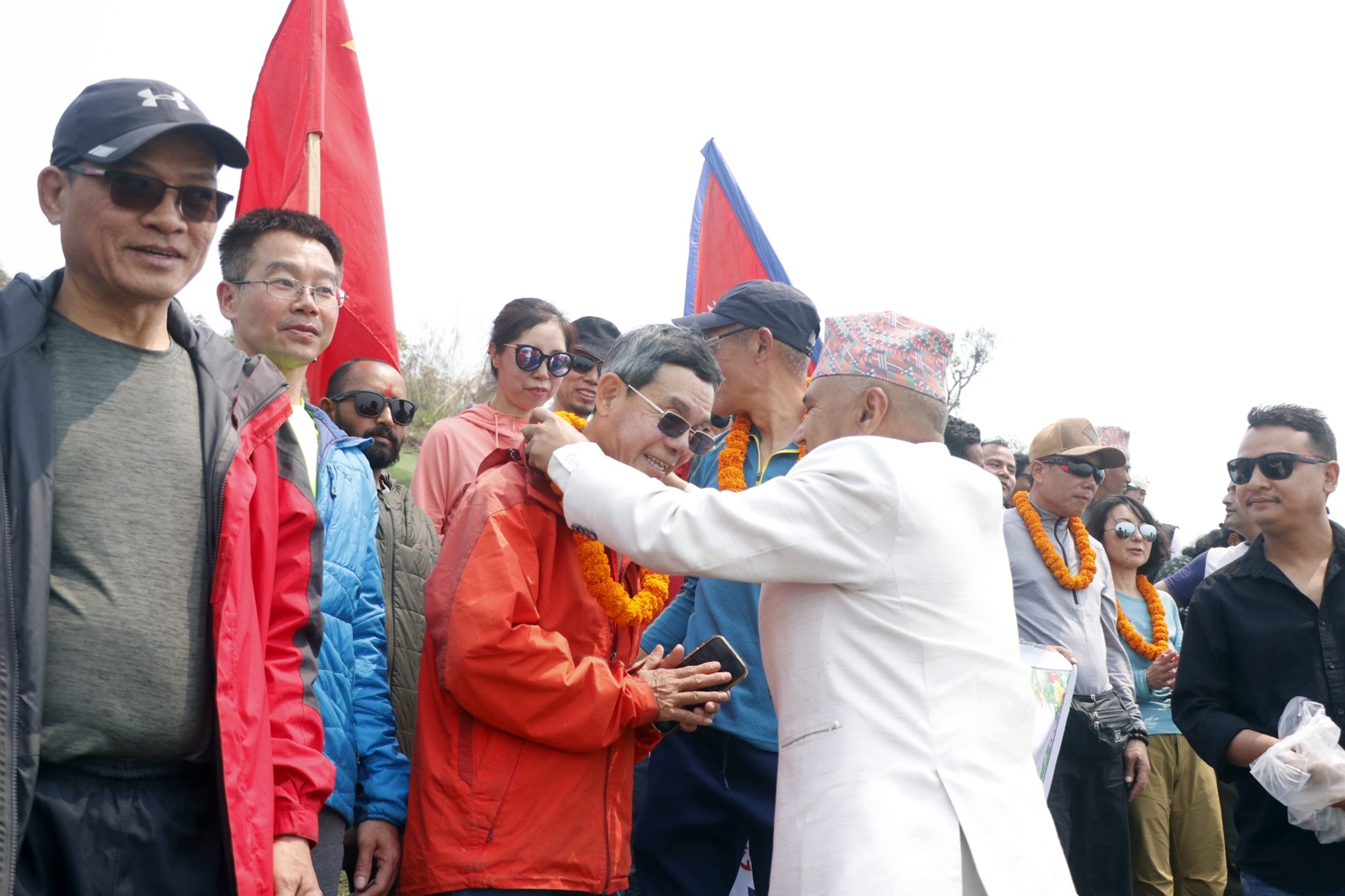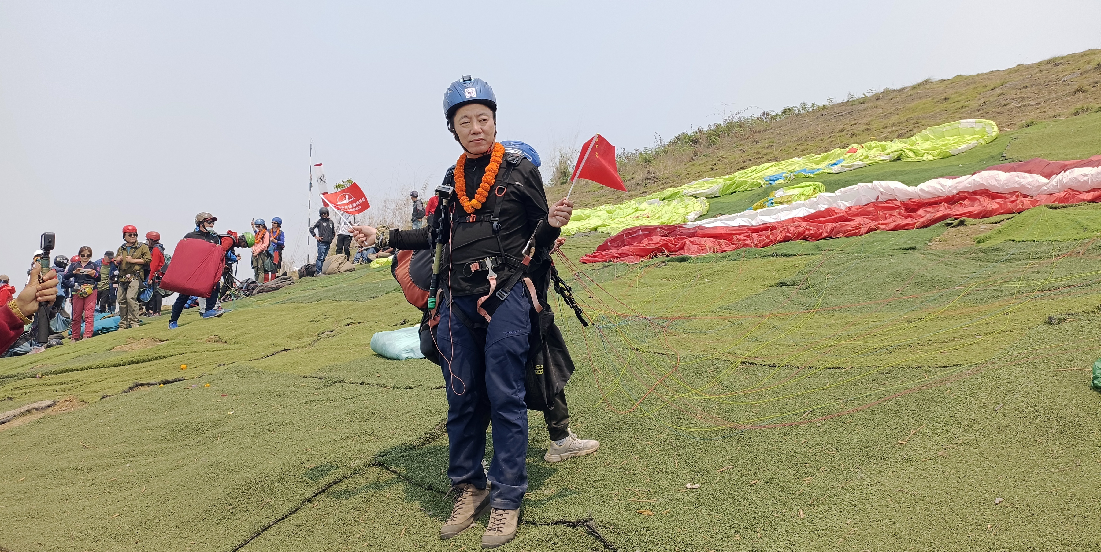 प्याराग्लाइडिङ गर्न पोखरा– २४, मान्द्रेढुङ्गामा आइपुगेका चिनियाँ पदाधिकारीहरु ।