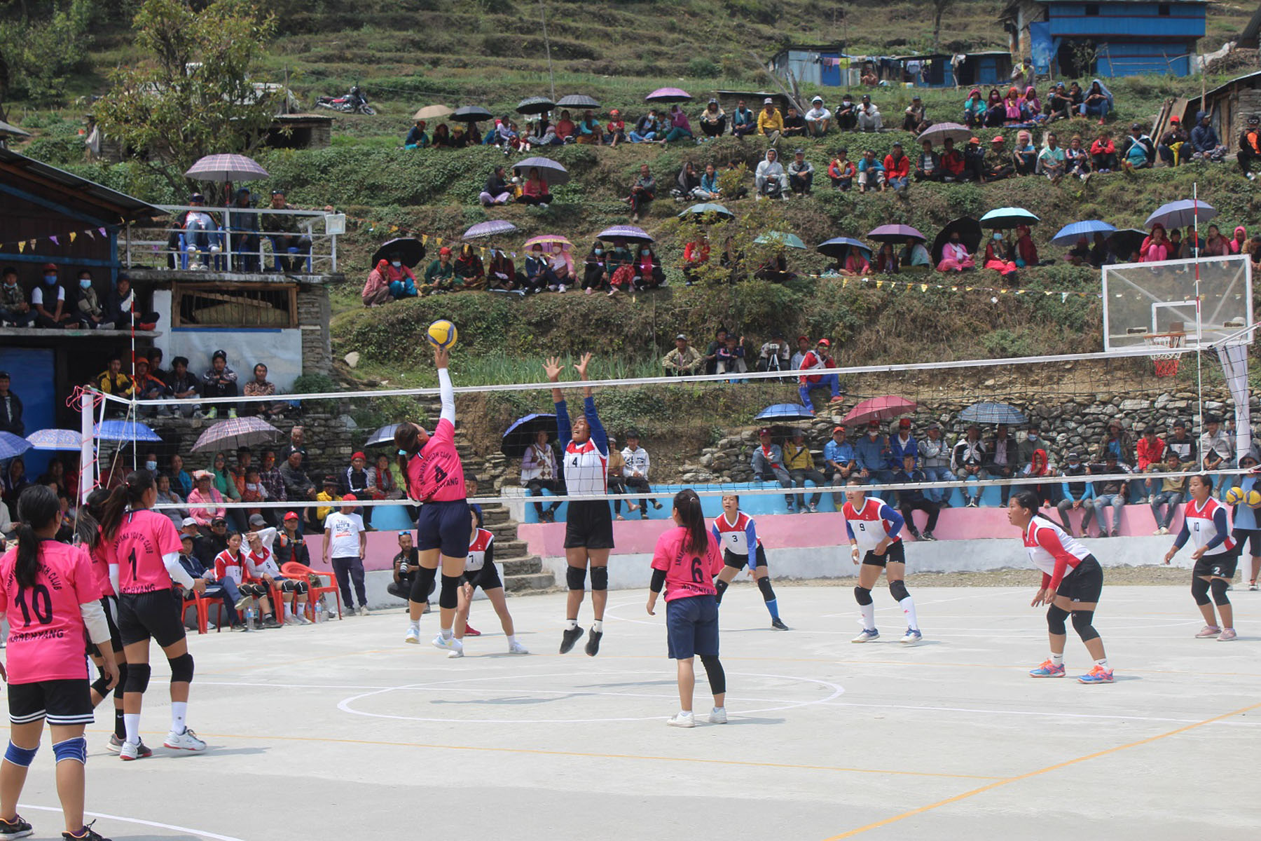 म्याग्दीको अन्नपूर्ण गाउँपालिका–७ घराम्दीमा निर्माण भएको खेलमैदानमा प्रतिस्पर्धा गर्दै खेलाडीहरु । अन्नपूर्ण गाउँपालिकाले रु १४ लाख तीस हजार अनुदान उपलब्ध गराएको यो खेलमैदान बनाउन समुदायले श्रमदानका अतिरिक्त थप रु ३४ लाख ७७ हजार चन्दा सहयोग गरेका छन् । तस्बिर: सन्तोष गौतम/रासस