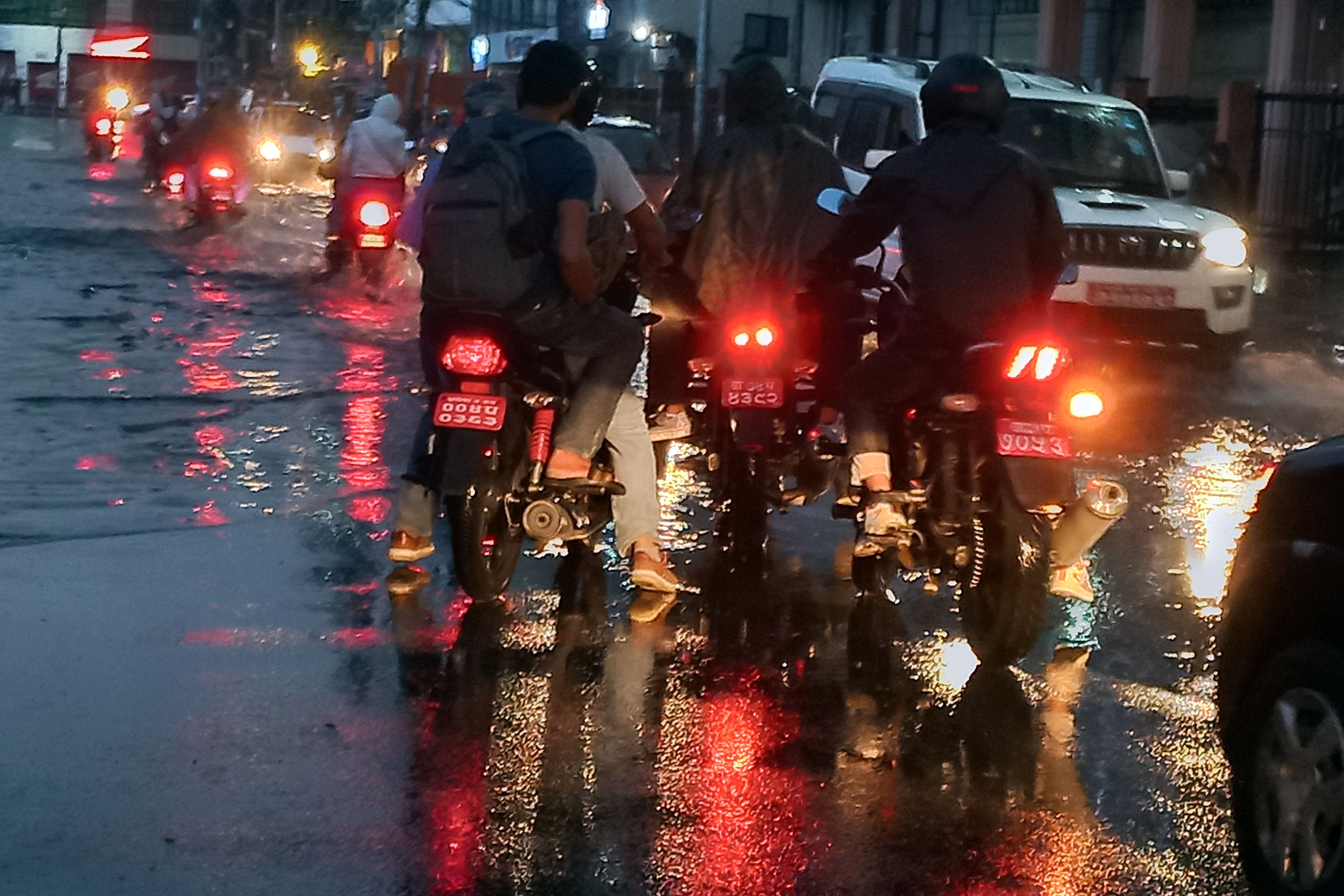 शनिबार अपरान्ह्पछि भारी वर्षाका कारण काठमाडौँ न्यूप्लाजा क्षेत्रको जलमग्न सडक ।